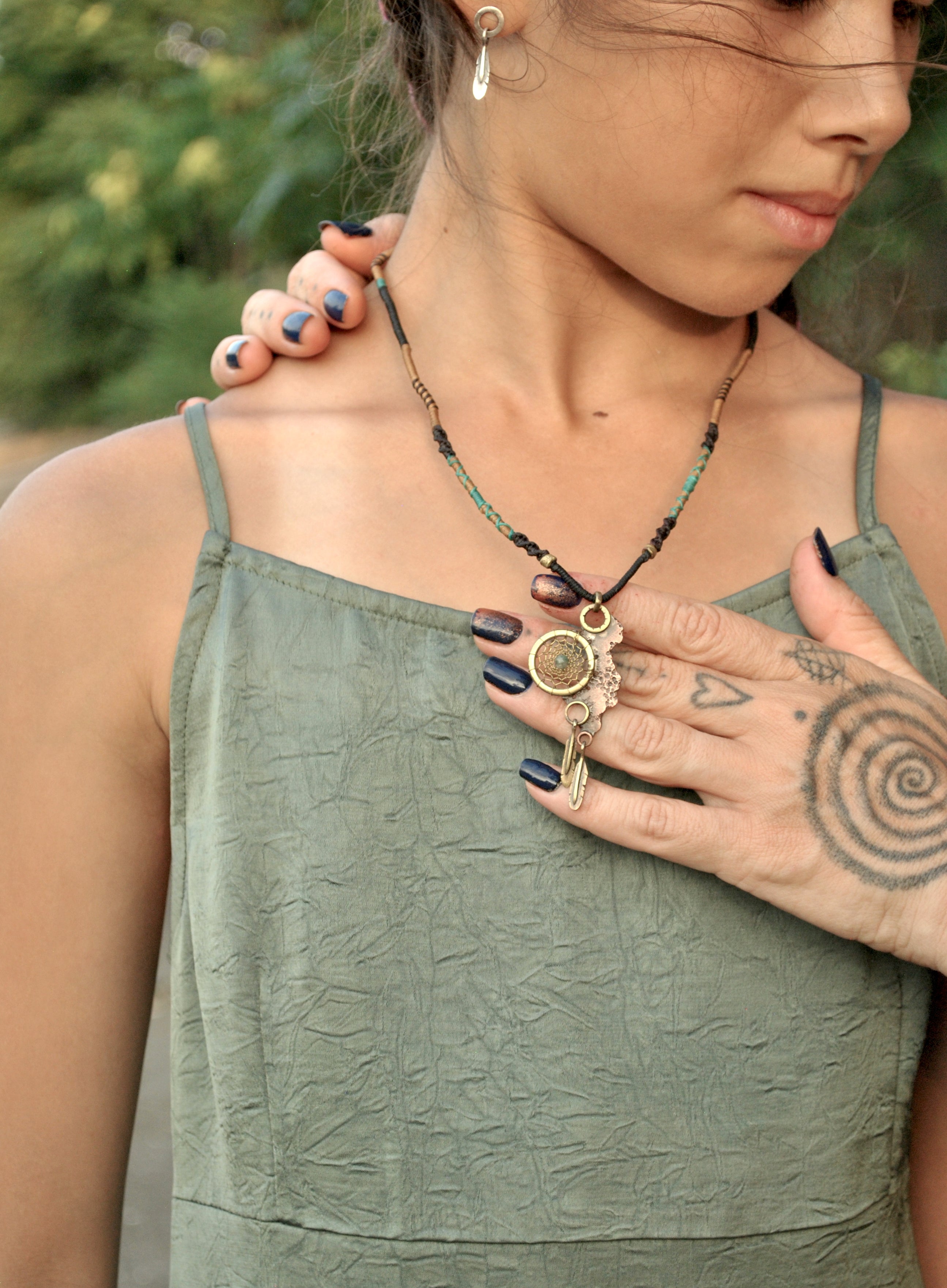 Dreamcatcher. a symbol worn by those who practice communication through dreams. This illusive art, developed after the great fall, is practiced by few and can only be learnt from the revered Oracles.